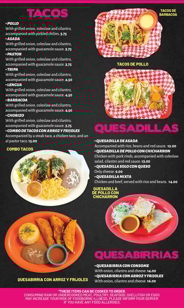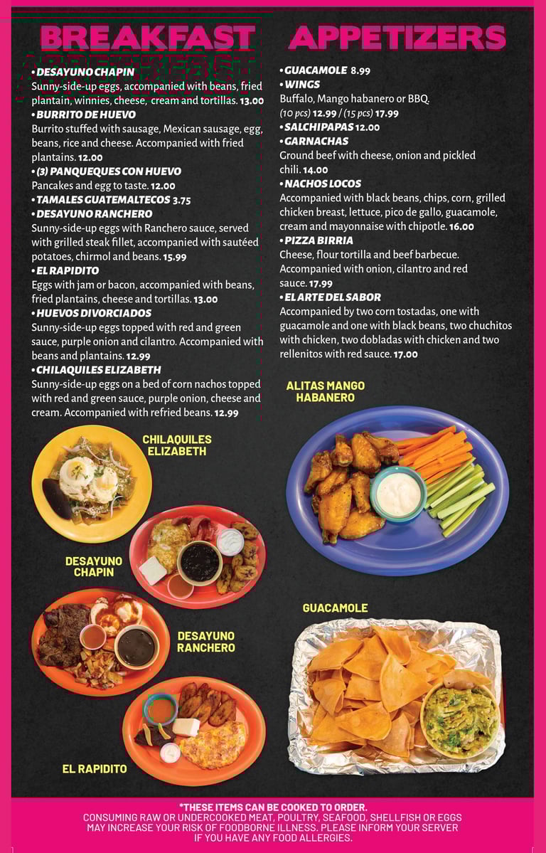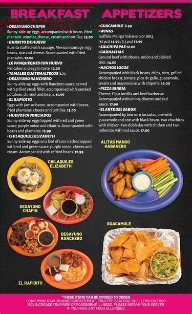 Cada categoría de nuestro menú celebra las raíces chapinas: tacos, antojitos y sabores que nos recuerdan a la tradición guatemalteca en cada bocado.